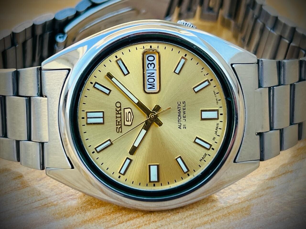 Seiko 5 Automatic 21 Jewels Gold Dial 7S26-0480 Mens Watch 38mm