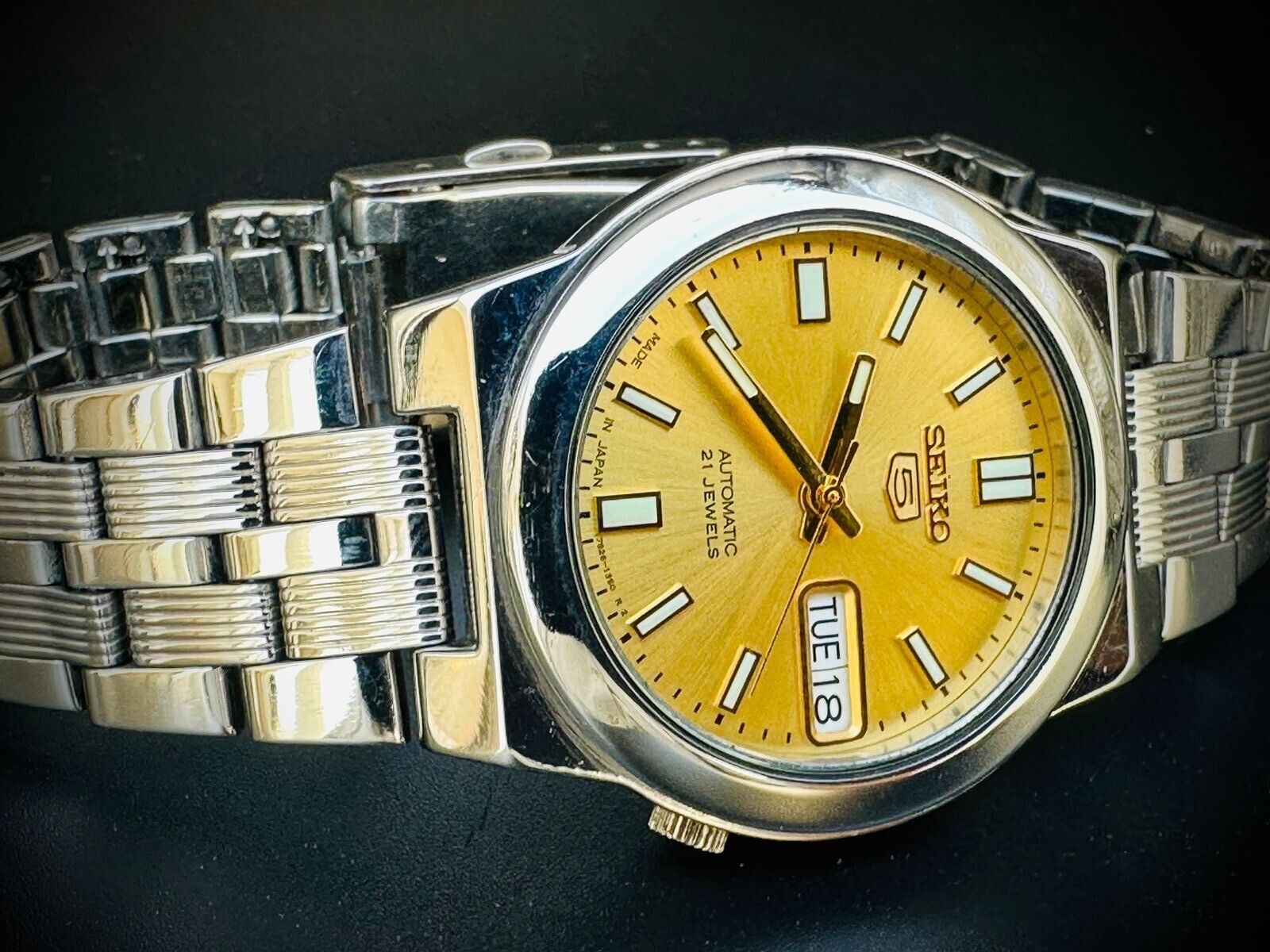Seiko 5 Automatic Gold Dial 21 Jewels 36mm 7s26 01R0 Japan Made