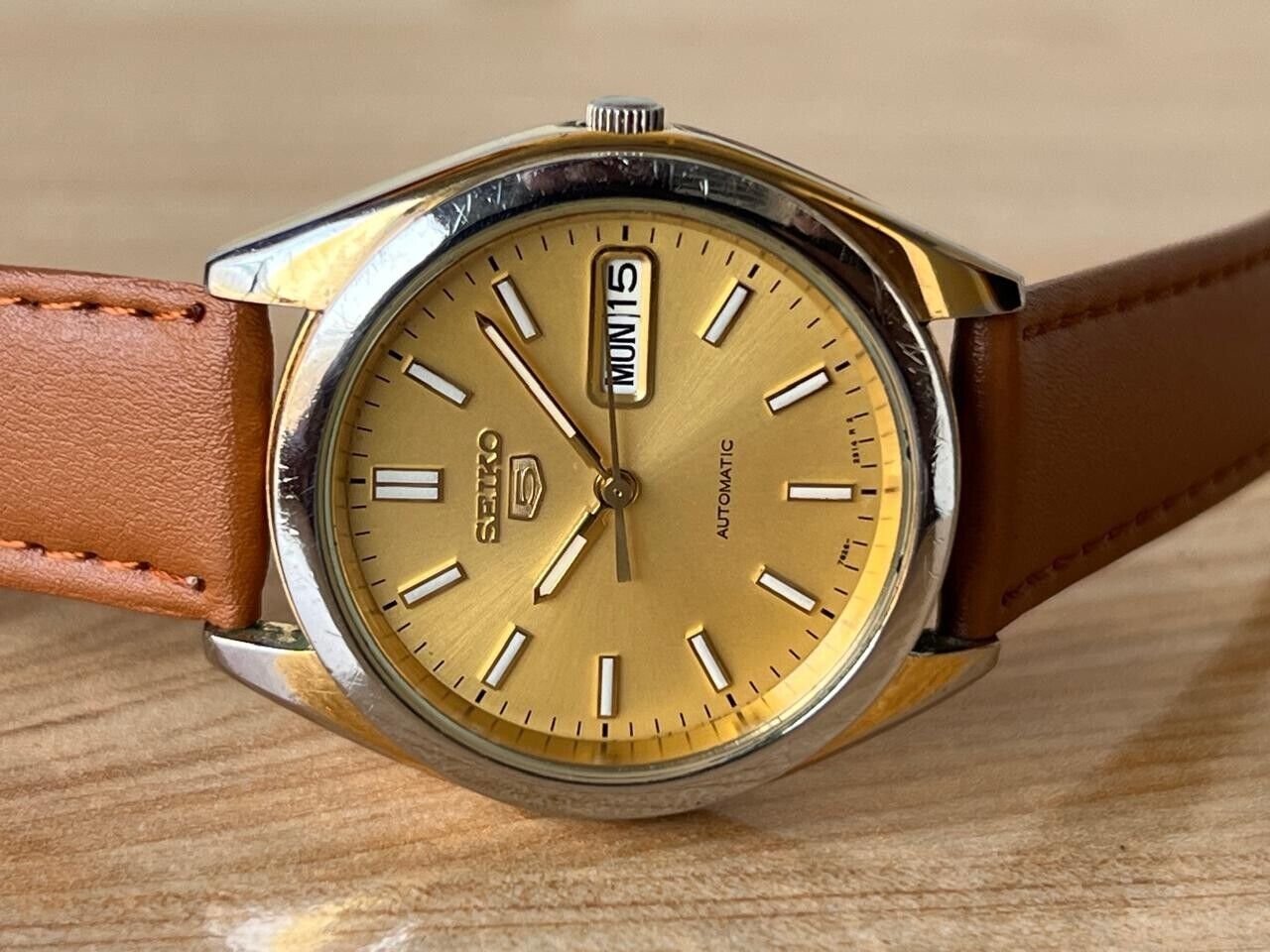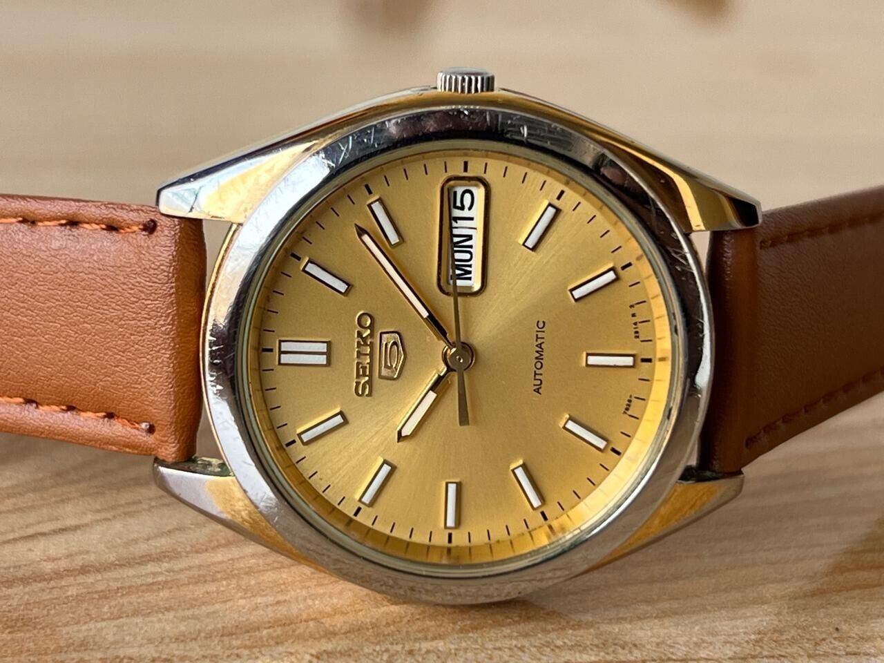 Seiko 5 Gold Dial 7s26-0420 Automatic 37mm Men’s Watch, Perfect