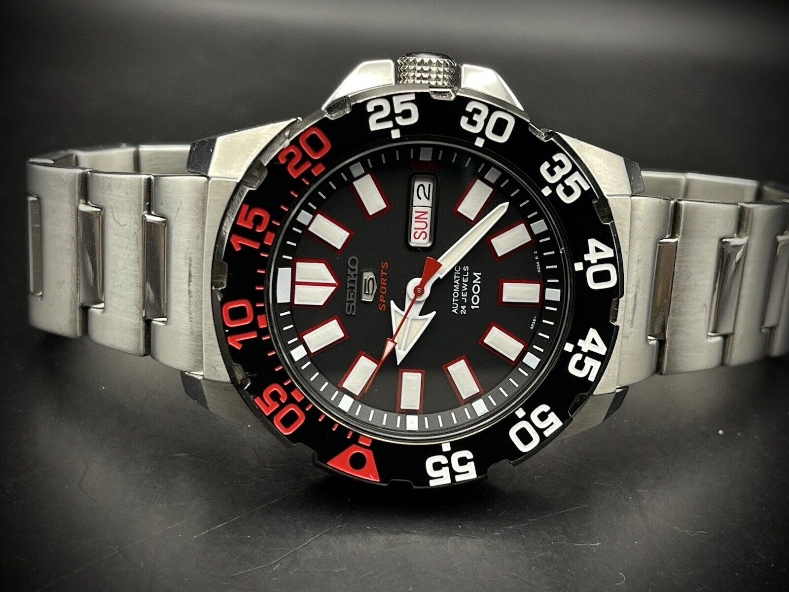 Seiko 5 Sports 100m 4R36-02T0 Monster Black Dial, Automatic Gents Watch Genuine