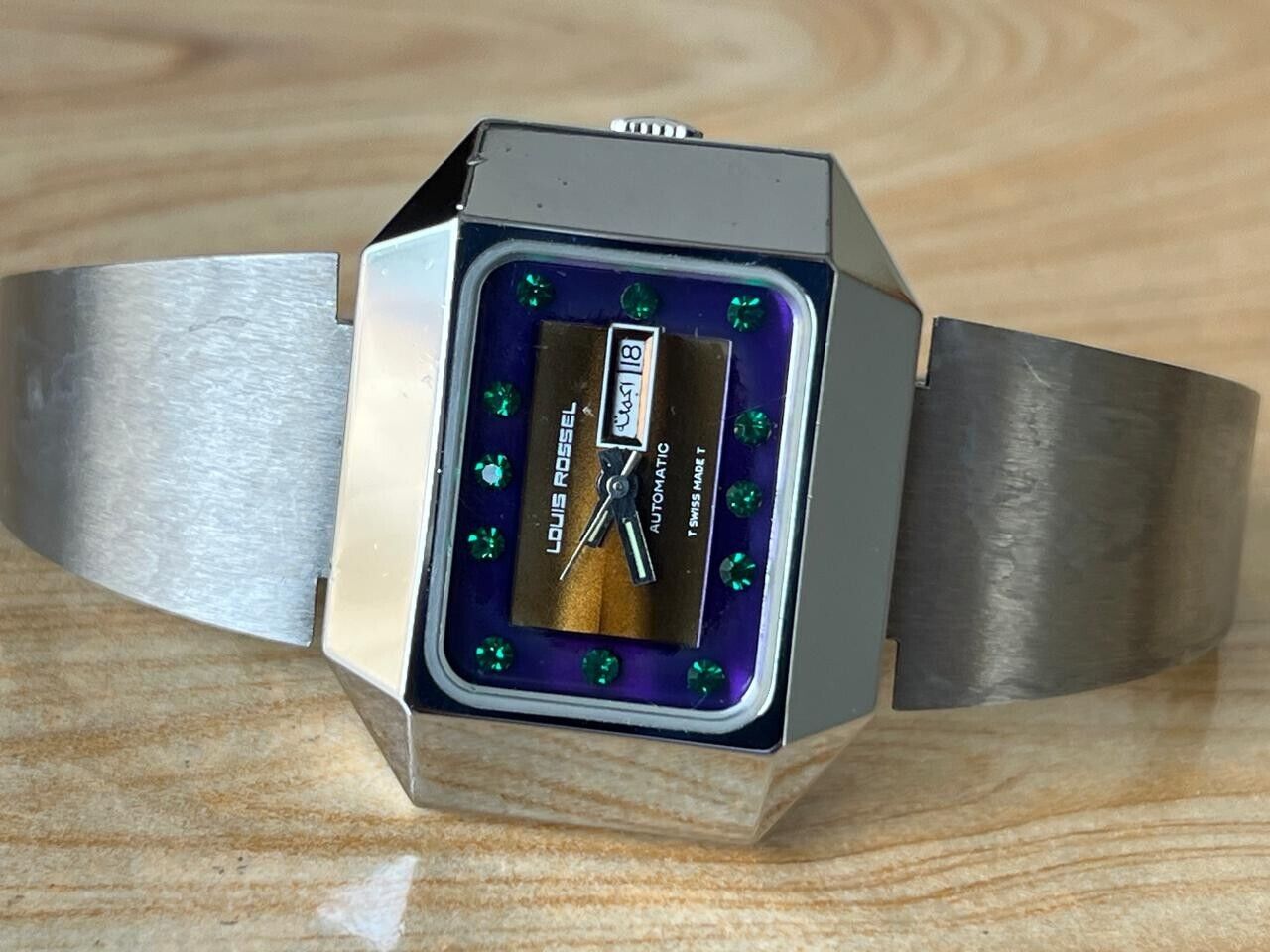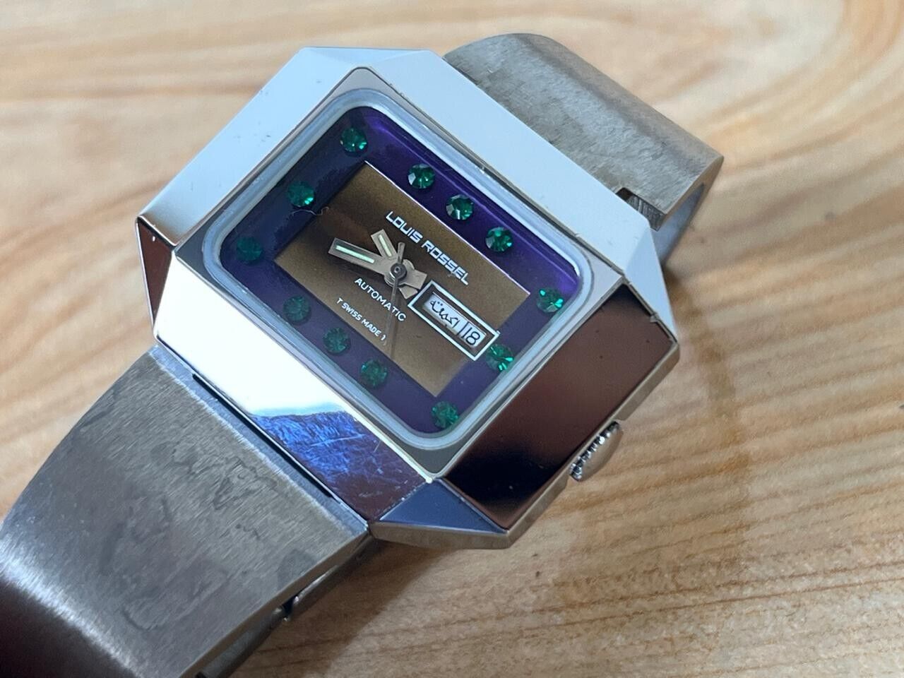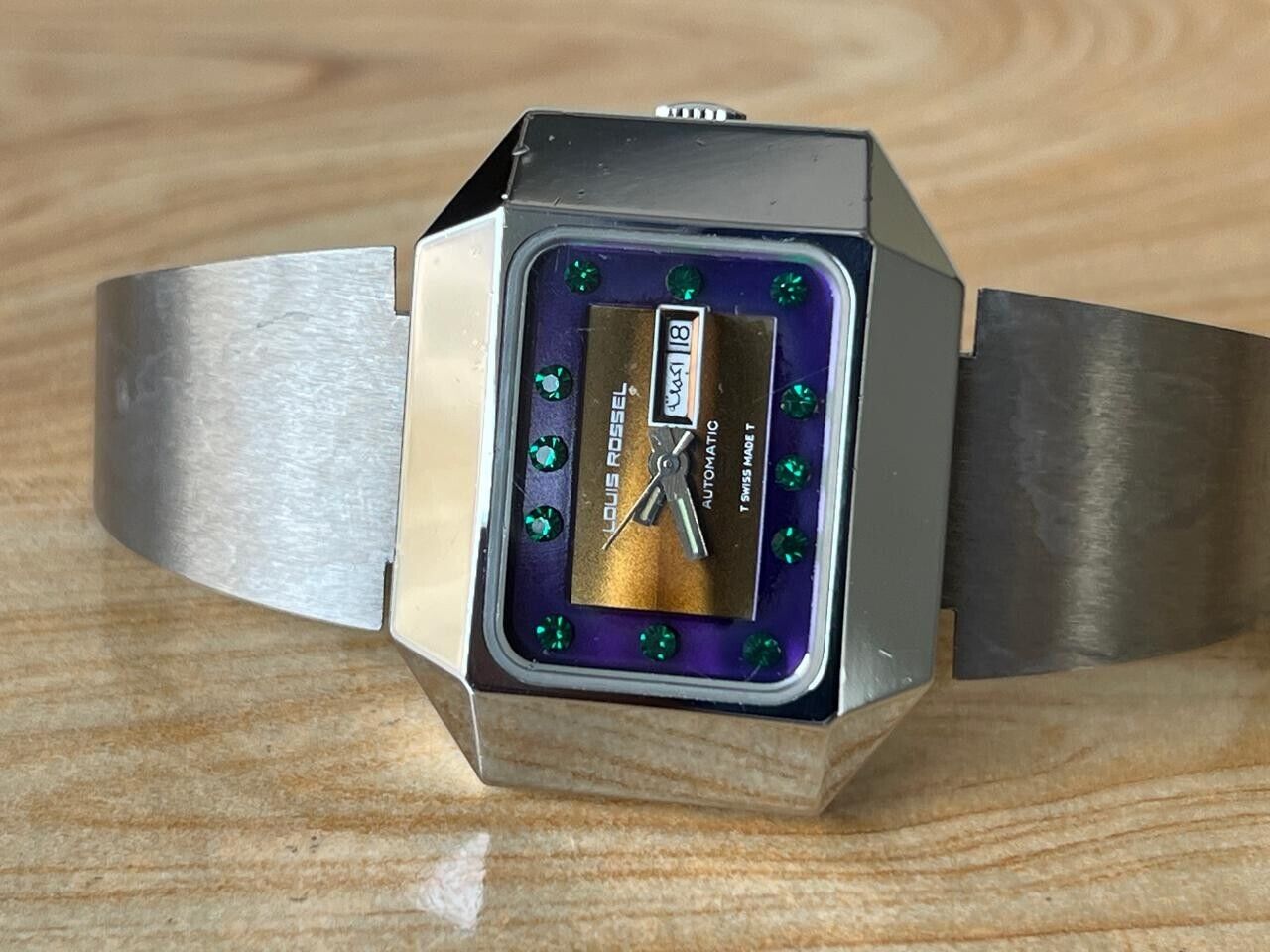 Vintage Louis Rossel Rare Dial 37mm Automatic Ladies Watch NOS